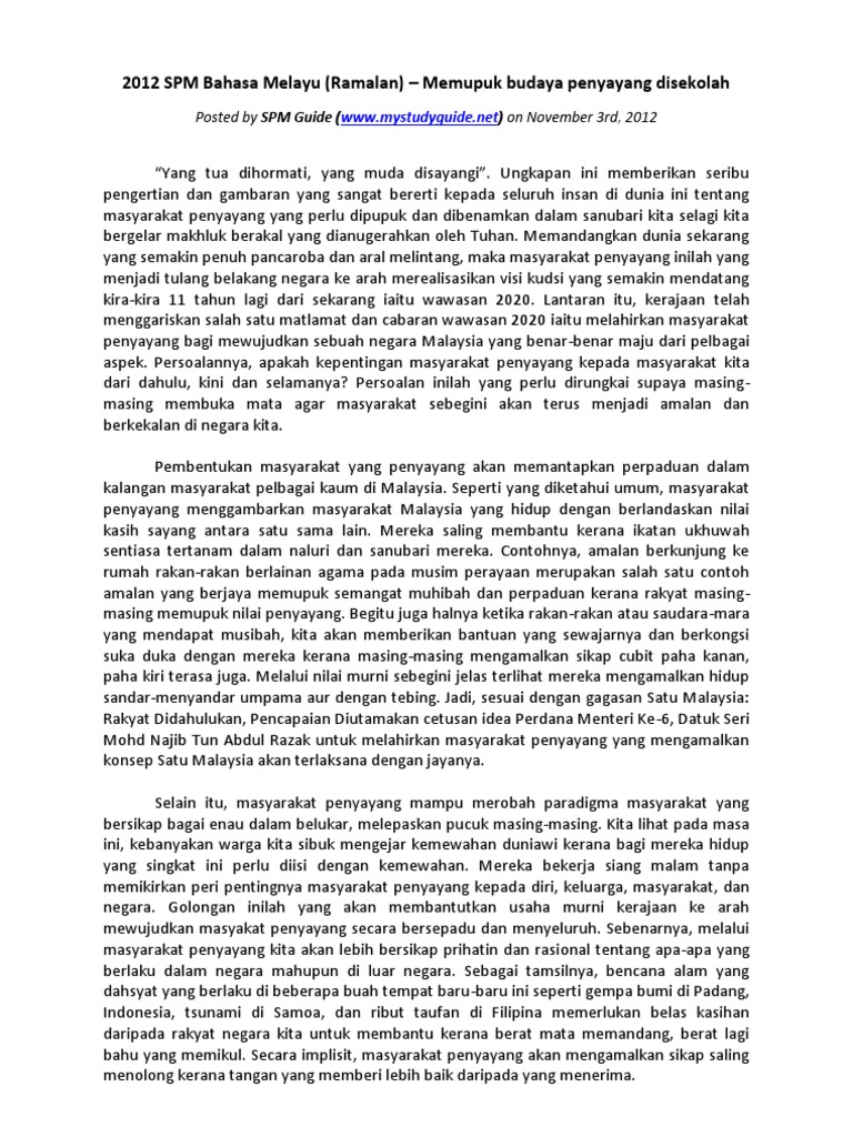 2012 Spm Bahasa Melayu Ramalan 2 Memupuk Budaya Penyayang Disekolah Pdf